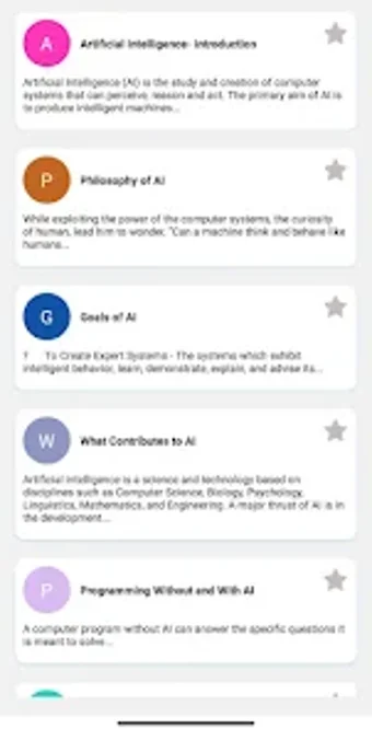 Met een breed scala aan onderwerpen, waaronder natuurlijke taalverwerking, robotica en neurale netwerken, biedt deze app een gedetailleerd overzicht van de huidige staat van AI. Gebruikers kunnen leren over verschillende zoekalgoritmen, fuzzy logic systemen, en de werking van spraak- en stemherkenningssystemen. Deze app is een waardevolle bron voor iedereen die zijn kennis van kunstmatige intelligentie wil vergroten.